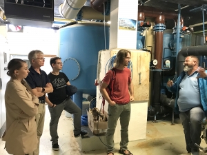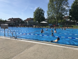 Die laufenden kleinen Neuerungen im Bad werden begrüßt und, etwa neue Umkleiden auf der Liegewiese, weiter umgesetzt. GR Markus Ledermann: „Ein Trumpf sind unsere großen Bäume!“ Freilich, es muss immer wieder nachgepflanzt werden und dafür ist ein regelrechter ‚Baum-Plan‘ überfällig, wie Kanitz berichtete. „Wir sollten jetzt in die Planung der anstehenden großen Investition einsteigen“, blickte GR Alex Gaugele voraus und sah Planungsmittel für den kommenden Haushalt und eine Durchführung der Investition unmittelbar nach der Saison 2023 als realistisch an. Kämmerin Lösching berichtete von bereits laufenden Vorarbeiten in der Verwaltung. Bei einem Gang durch die Maschinenräume im ‚Untergrund‘ wurde die Dimension der Aufgabe deutlich. Ob es künftig für das Bad auch solare Energie-Optionen gibt, wurde unter den Gesprächsteilnehmern rege diskutiert. GR Peter Hofelich drängte, dass es für Tage des großen Andrangs am Kiosk Entlastung geben sollte. Und er empfahl, die in die Jahre gekommenen beeindruckenden Bildtafeln, welche die Geschichte des Bades dokumentieren, zu erneuern.